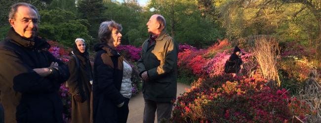 Our first impression approaching the Isabella Plantation was that the birds had also given up and gone to bed early because of the chill, leaving only the robins to serenade us. But the affect of clear blue skies, bright evening spring sunshine and a spectacular blooming of the camelliasand rhododendrons cheered ALL including the birds so that by the time we left the park the evening chorus was loud and clear. 17 different bird songs were identified (by our expert) and a great evening's entertainment was experienced