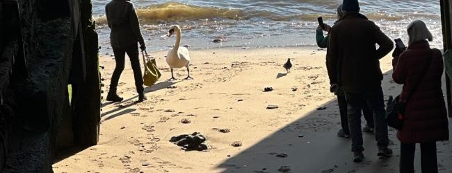 This was one of those specialdays where evrything workd. The sun shone, the coffee stop srved the most delicious muffins. The pub ( Iam Mackellens small pub . the Grapes, in the Isle of Dogs) was able to accomodate us, The river twinkled and fun was had on sandy beaches taliking to swans and the secret at gthe nd of the walk - a roof top garden was marvellous.